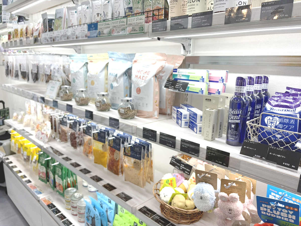 PET-SPAで販売している商品は、バイヤーがペットへのやさしさなどを配慮し、「安心して与えていただける商品」だけを厳選しています。また、トリミングによる外側からのケアだけでなく、ペットの体の内側からも健康と美容をサポートしたいという想いから、オリジナルのドッグフードやおやつも販売しています。お買い物だけの利用も歓迎しておりますので、ぜひお気軽にお立ち寄りください。